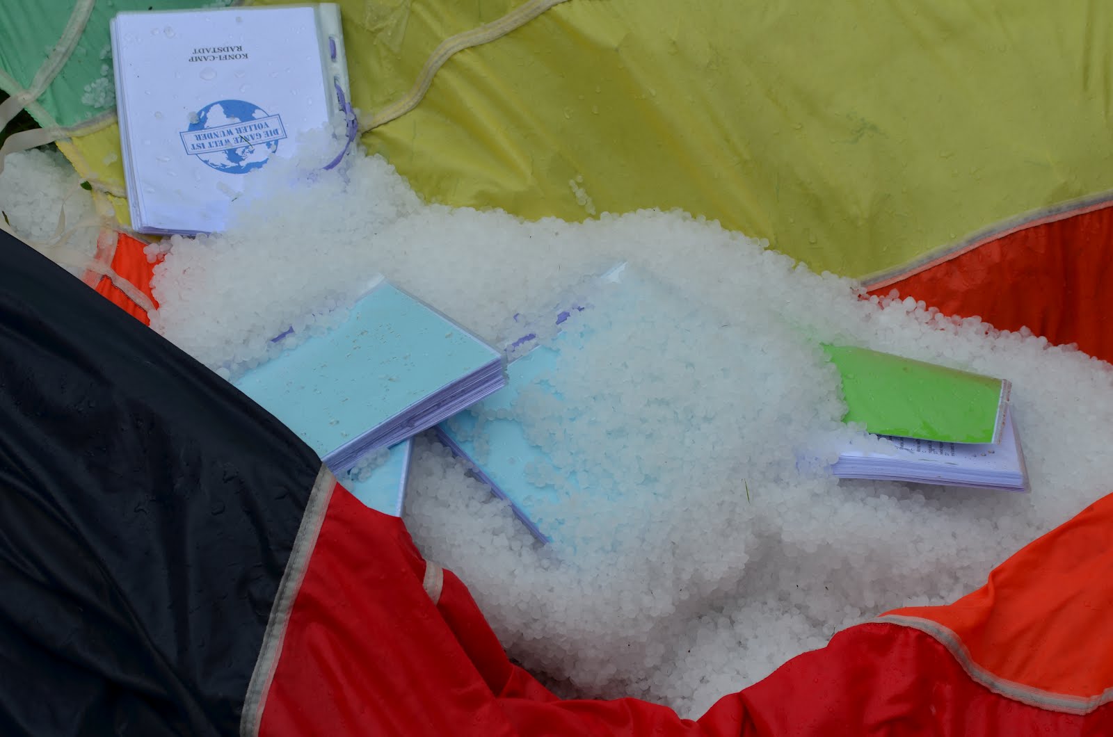 Wir wurden dann leider von Hagelkörnern überrascht, die uns ganz schöne Angst einjagten, aber nach ein paar Minuten unter einer Plane, riss der Himmel doch noch auf und die Sonne kam raus, pünktlich zur Taufe, als ein Zeichen für unsere Täuflinge.