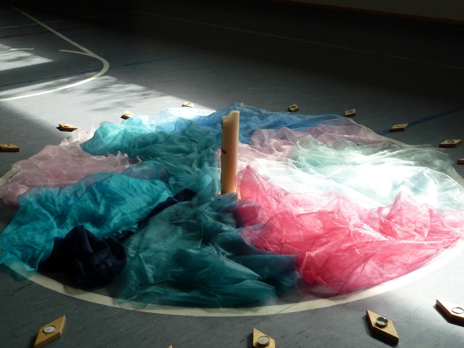 Unser Motto-Mobilee hängt in der Turnhalle.