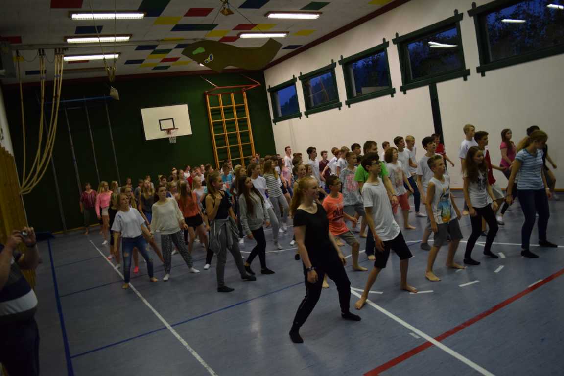 So zum Beispiel auch der Clubtanzabend, bei dem drei professionell tanzende Teamer mithilfe eines kleinen Tanzteams eine Choreographie vorbereitet haben und sie nun Schritt für Schritt den Konfis beibrachten.