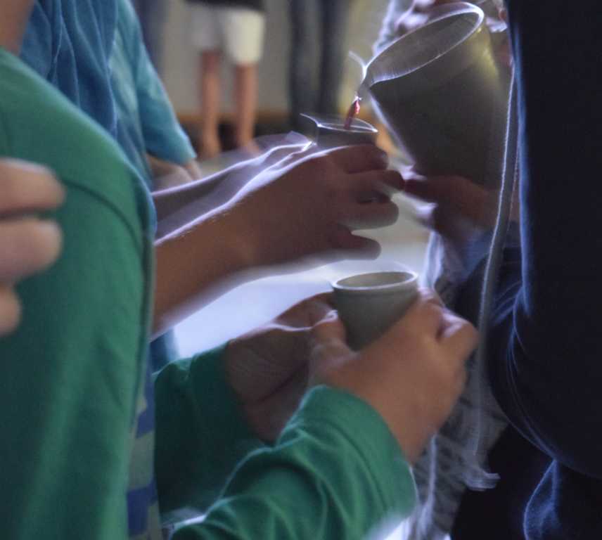 Unter der Leitung von sechs Konfirmanden und Robert wurde das Abendmahl durchgeführt.